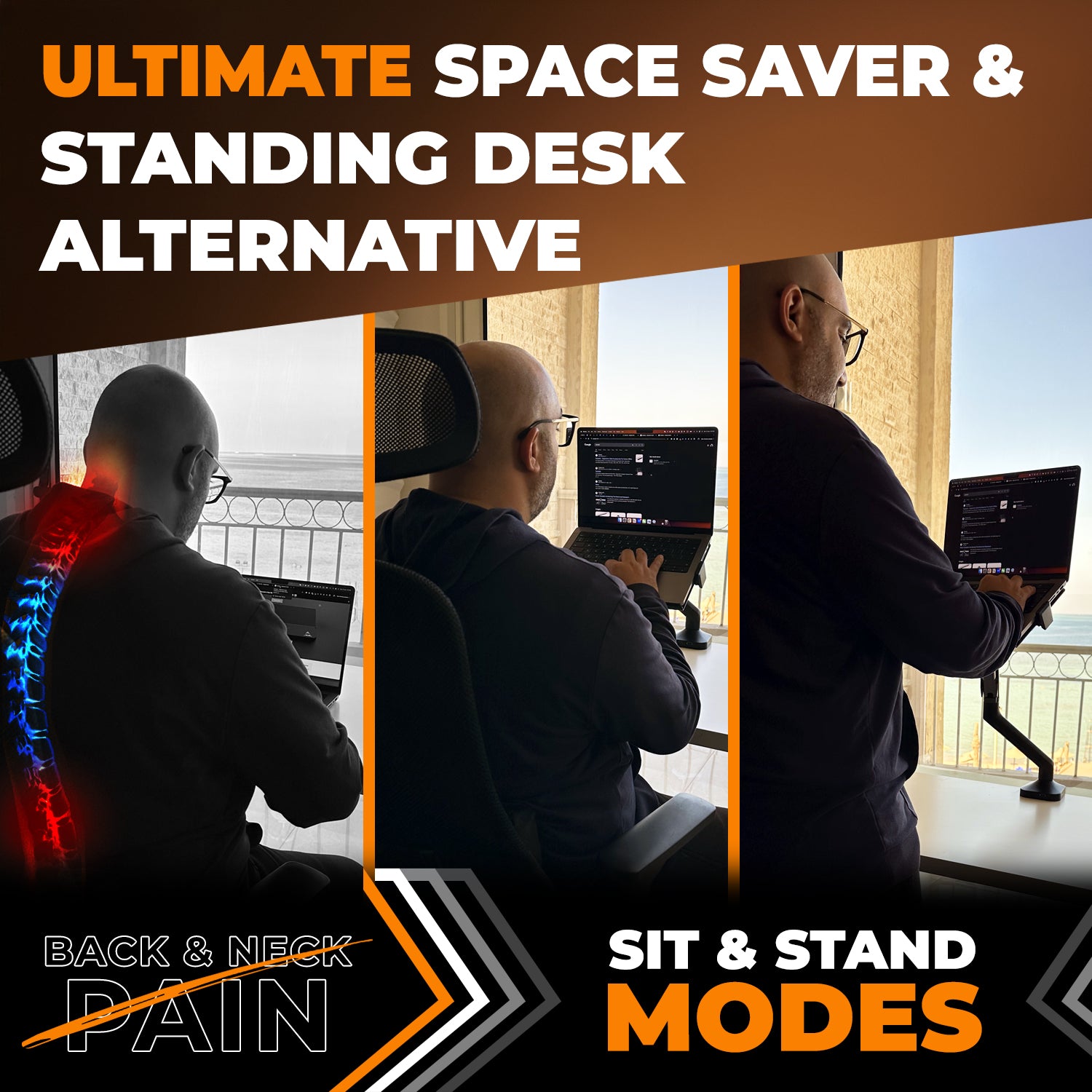 Reduce neck and back pain with our ergonomic standing laptop mount. It glides effortlessly, offering seamless motion and 360° rotation to help you find the perfect angle for comfort and productivity.