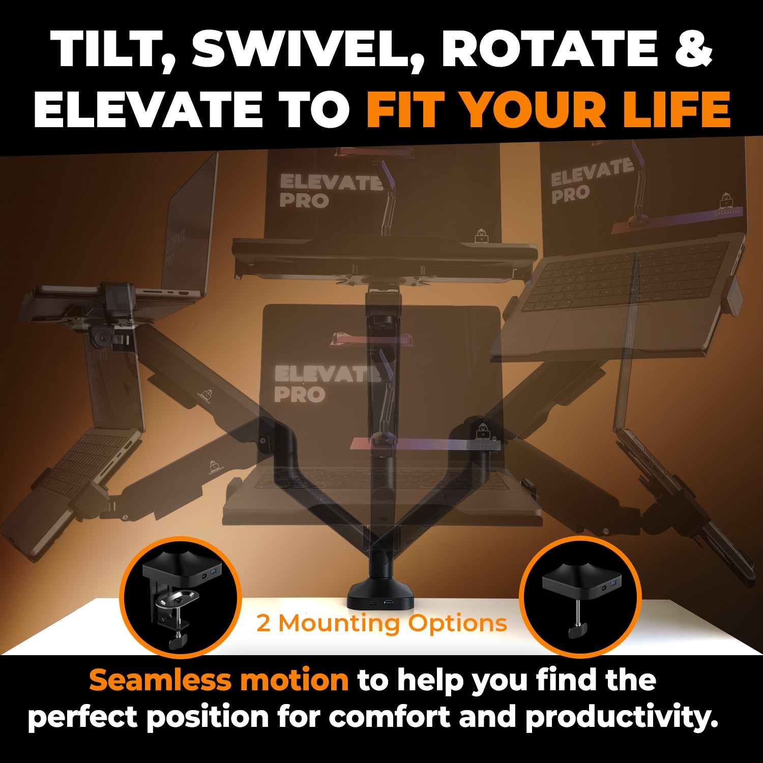 Deskello Elevate Pro - Heavy-Duty Laptop Mount for Desks (11"-17.3" - max. 26lbs)